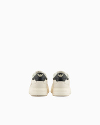 Sneakers with hammered cowhide uppers. A style with clean lines and a comfortable fit. The front of the tongue and back tab have a screen-printed Emporio Armani logo and eagle motif. An essential design that reinvents the style of nineties basketball footwear. Product Code: X4X568XN1621U065 Details Composition 100% Bovine leather Leather upper Hammered finish Rounded toe Lace-up fastening Logo back tab