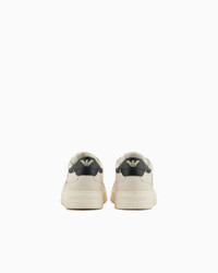 Sneakers with hammered cowhide uppers. A style with clean lines and a comfortable fit. The front of the tongue and back tab have a screen-printed Emporio Armani logo and eagle motif. An essential design that reinvents the style of nineties basketball footwear. Product Code: X4X568XN1621Q778 Details Composition 100% Bovine leather Leather upper Hammered finish Rounded toe Lace-up fastening Logo back tab