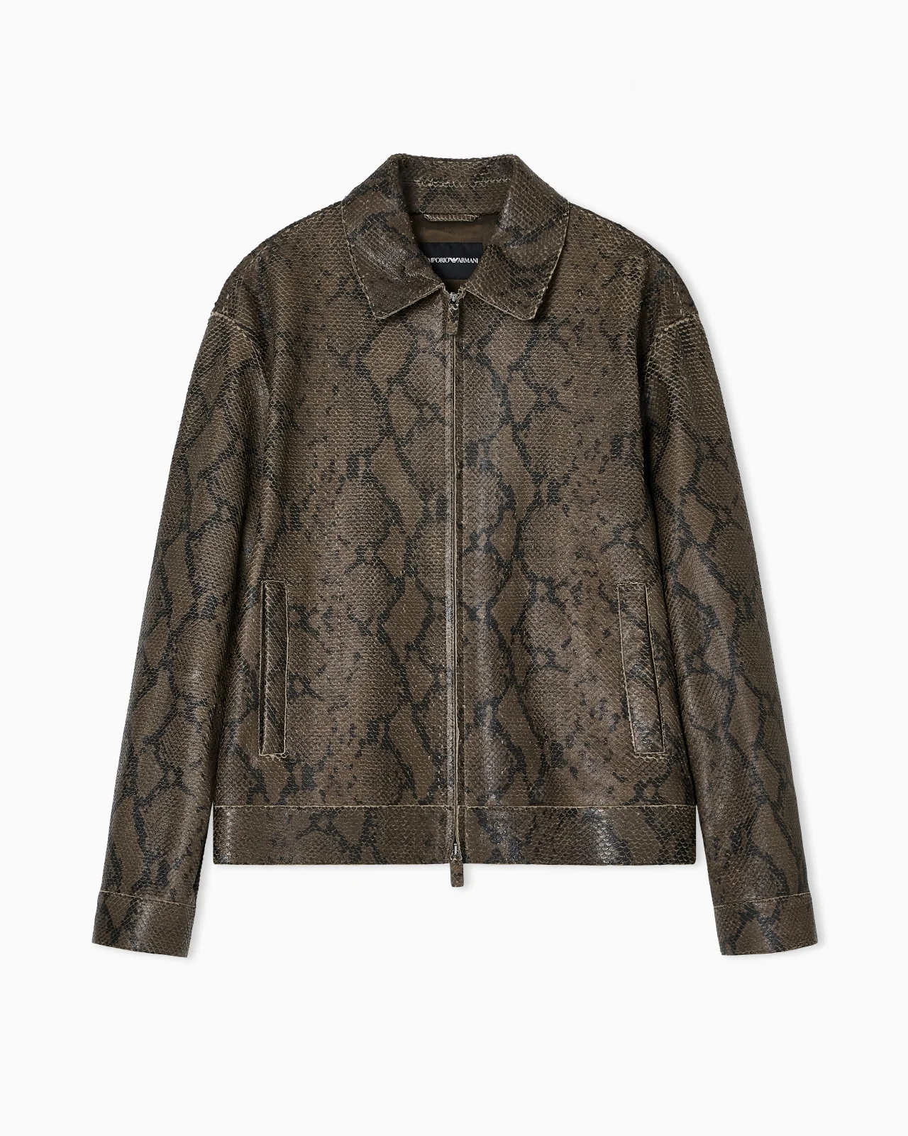 LAMBSKIN NAPPA LEATHER BLOUSON IN A PYTHON PRINT