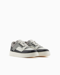 Sneakers with leather upper and contrasting mesh details. A style with clean lines and a comfortable fit. The front of the tongue is embellished with an Emporio Armani logo. An essential design that reinvents the style of nineties basketball footwear. Leather and mesh upper Rounded toe Lace-up fastening Rubber soles Product Code: X4X688XR333U566