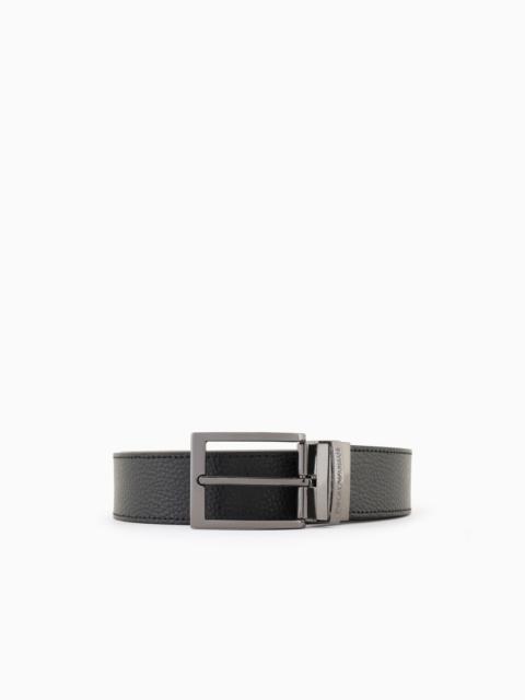This reversible cowhide item offers two versatile looks, with smooth leather on one side and boarded leather on the other. Fastened with logo buckle and tongue. The must-have accessory in any man’s wardrobe, synonymous with class and elegance in all its simplicity. Product Code: Y4S195YLO8J180742 Details Composition 100% Bovine leather Measurements: 125 x 3.5 cm Leather Reversible One smooth side One side with palmellato print Metal buckle Made in Italy