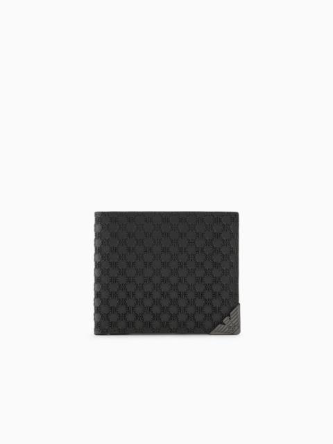 Card slots, a banknote compartment and a coin purse make this cowhide wallet particularly practical. This small leather goods line is defined by timeless elegance, with vintage details that combine with a modern and sophisticated style. These genuine leather accessories are embellished with a pattern depicting a repeating, vintage-inspired, embossed knot motif and are completed by a distinctive metal detail with the iconic eagle on the left corner. Product Code: Y4R167YQ82X180001 Details Composition 100% Bovine leather Measurements: 11 x 9.4 x 3 cm Leather Embossed pattern Metal eagle Card pockets Banknote compartment Press-stud coin purse