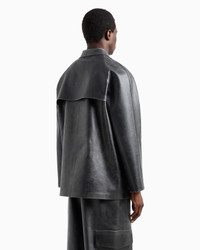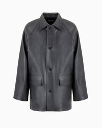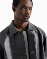 Leather-effect coated-fabric pea coat