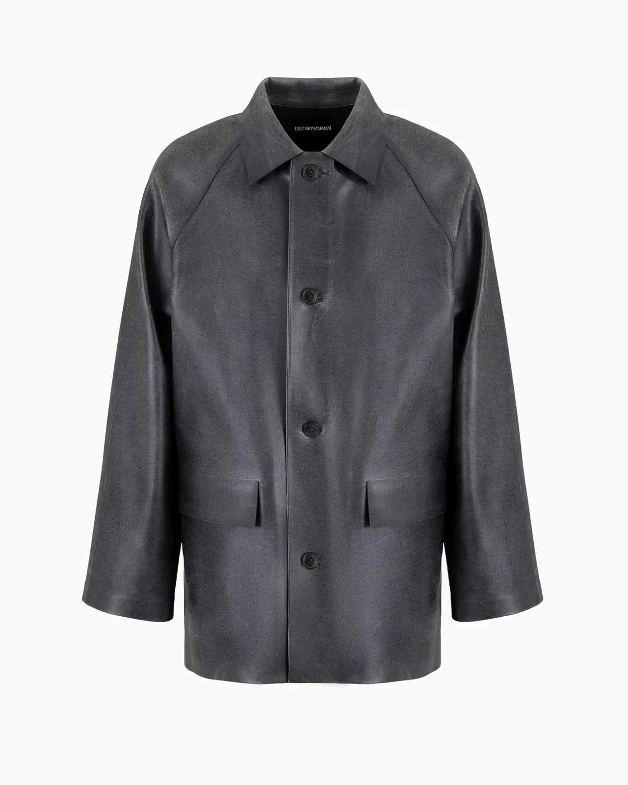 Pea coat with classic collar and buttoned front. The exclusive, highly stiff fabric is treated with a sophisticated coating to give it vintage-effect veining and a leathery look and texture. Product Code: 6D1B6Z1K79Z10622 Details Composition 100% Polyester Coated fabric Classic collar Button closure Long sleeves Side welt pockets with flap Fitting The model is 188 cm tall and is wearing size 48/M (Italian Size)