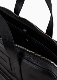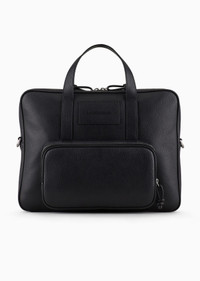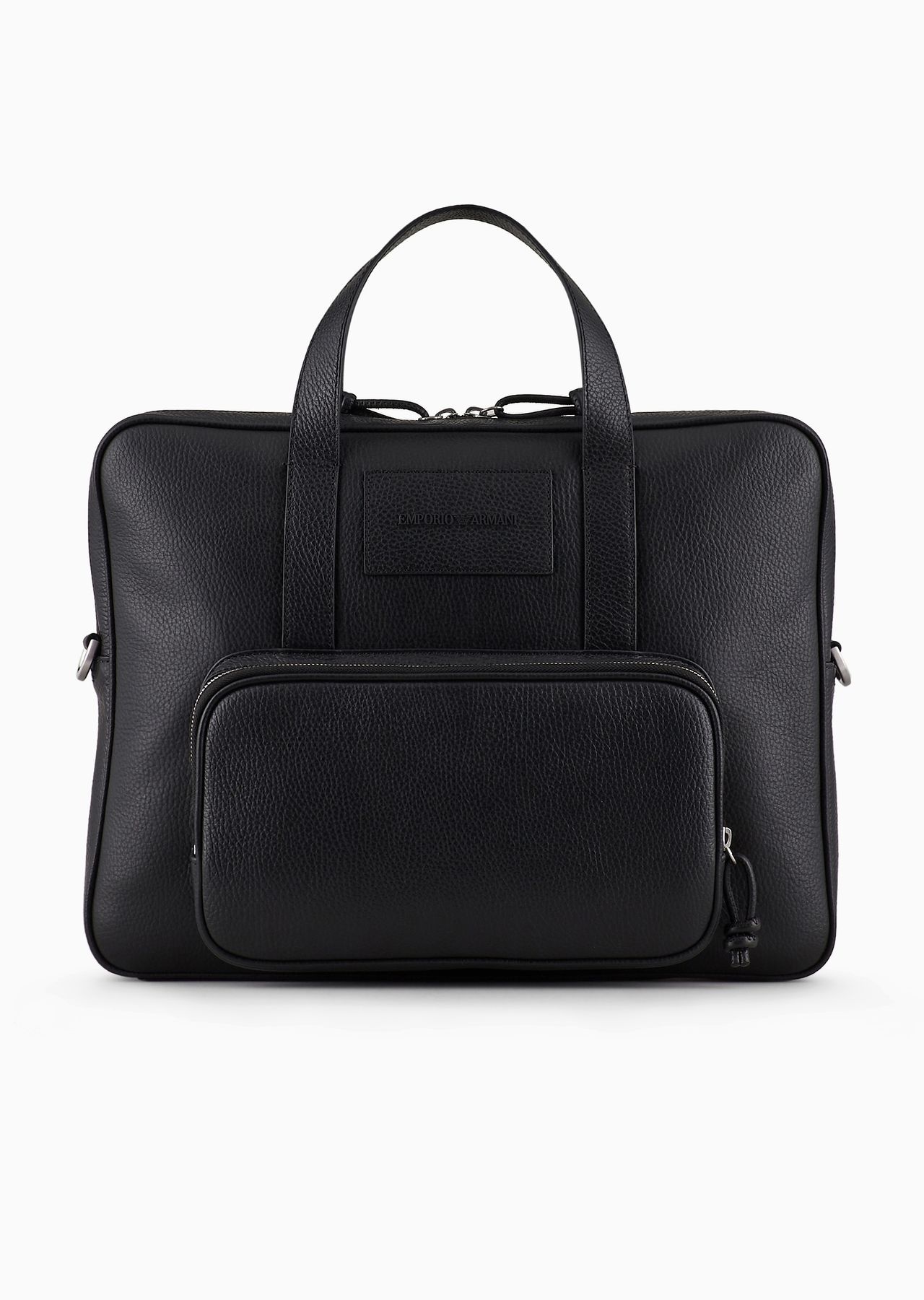 Business briefcase with zip closure, outer pocket and adjustable, detachable shoulder strap in logo webbing. Made from extremely soft tumbled leather, this ultra-sophisticated, versatile accessory is defined by clean lines and a monochromatic leather patch with 3D rubberised logo lettering. This accessory belongs to the Essentials selection, the Emporio Armani capsule collection that is an evergreen statement of style: an ongoing collection with clean, well-designed shapes for a wardrobe that meets the demands of any season. Product Code: Y4P144Y068E180001 Details Composition 100% Bovine leather Measurements: 38.5 x 29.5 x 5 cm Leather Tumbled finish Zip closure Double top handle Logo patch Outer pocket Detachable shoulder strap This bag is suitable for carrying: phone, wallet, card holder, 15-inch laptop, documents