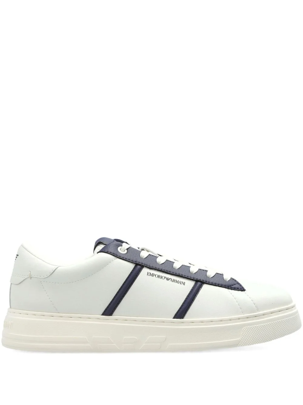 leather panelled sneakers Highlights - White - Leather upper - Navy blue panels - Lace-up fastening - Flat rubber sole - Branded insole Imported Composition Outer: Bovine Leather 100% Lining: Polyester 100% Sole: Rubber 100%
