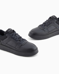 Calfskin sneakers with mesh details. The front of the tongue and back tab always have a screen-printed Emporio Armani logo. Clean-lines and comfort define these sneakers with their essential design that echoes 90s-style basketball footwear. Leather Mesh details Visible logo Lace-ups Rounded toe Rubber soles Product Code: EM002855AF18018MZ312