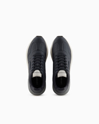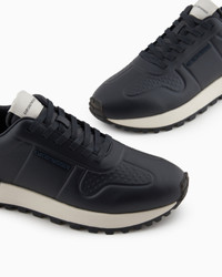 Sneakers made from recycled leather with side logo that adds distinction, and embossed thermoformed details. The customised running shoe sole is made of recycled EVA with non-slip tread. Sophisticated in style and deeply inspired by traditional running sneakers, they are versatile and suitable for even the most elegant occasions. Leather Side logo Lace-ups Rounded toe Rubber soles Product Code: X4X684XR32300285