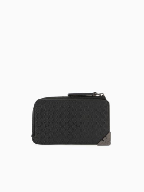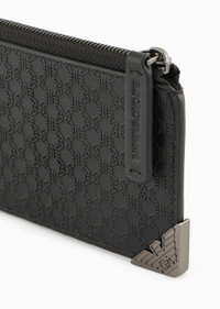 Card holder with zip closure and outer pockets, made of cowhide. This small leather goods line is defined by timeless elegance, with vintage details that combine with a modern and sophisticated style. These genuine leather accessories are embellished with a pattern depicting a repeating, vintage-inspired, embossed knot motif and are completed by a distinctive metal detail with the iconic eagle on the left corner. Product Code: Y4R630YQ82X180001 Details Composition 100% Bovine leather Measurements: 11 x 9.5 x 2.5 cm Leather Embossed pattern Metal eagle Zip closure Outer pockets