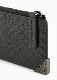 Card holder with zip closure and outer pockets, made of cowhide. This small leather goods line is defined by timeless elegance, with vintage details that combine with a modern and sophisticated style. These genuine leather accessories are embellished with a pattern depicting a repeating, vintage-inspired, embossed knot motif and are completed by a distinctive metal detail with the iconic eagle on the left corner. Product Code: Y4R630YQ82X189848 Details Composition 100% Bovine leather Measurements: 11 x 9.5 x 2.5 cm Leather Embossed pattern Metal eagle Zip closure Outer pockets