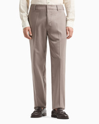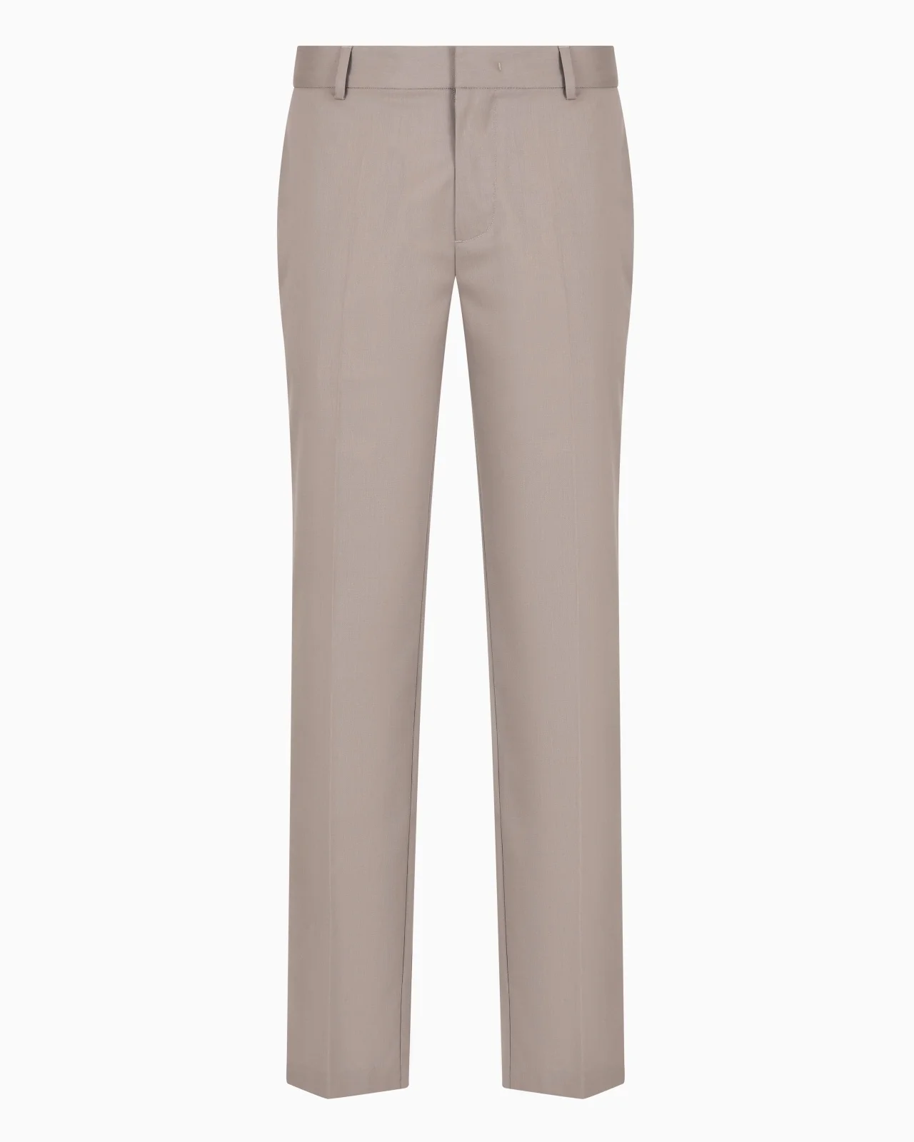Formal design chinos. Made in a virgin-wool blend twill, these trousers feel fluid, are ultra lightweight and have an urban appeal, bringing metropolitan style to any look. Lightweight twill Chinos Waist with belt loops Closure with zip, hook and back button Side pockets Buttoned back double welt pockets EA logo plate Product Code: EM001505AF13726U6107