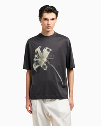 Oversized-fit, crew-neck T-shirt with front flower print. The graphic design and embroidery that embellish this part of the collection convey an immediate feeling of lightness, evoking delicate shapes and subtle figures, as if sculpted by the wind on sand dunes. Made from a jersey in a blend of cotton and Lyocell, a semi-synthetic fibre that has an exceptionally low impact on the environment. It is derived from eucalyptus trees and is renowned for being moisture-wicking, durable, breathable and wrinkle-proof. Oversized fit Jersey Crew neck Short sleeves Collection print Product Code: EM001460AF10017U8168
