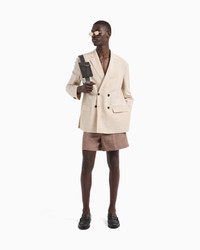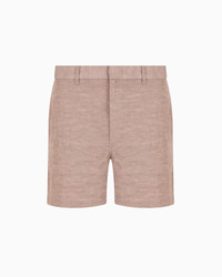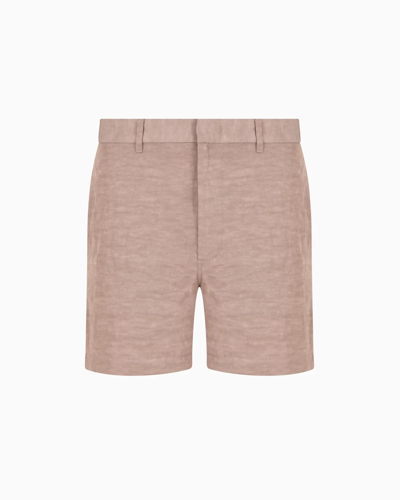 Shorts made from a unique high-sheen viscose and linen blend with a quasi-technical, three-dimensional weave. Lightweight iridescent textures, natural colours and crinkled surfaces, like wind-etched rock, dominate this part of the collection for a fresh summer spirit. Iridescent fabric Waist with belt loops Closure with zip, hook and back button Side pockets Back welt pockets with flap and press stud EA logo plate Product Code: EM001196AF13812U6195
