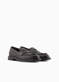 Leather loafers with a pebbled finish. A collection of high-quality Made-in-Italy formal footwear featuring a logo on the outer sole: ideal for completing outfits with practical elegance, a truly versatile style dedicated to the modern businessman. Product Code: X4A190XR2071M814 Details Composition 100% Calf-skin leather Pebbled leather Rounded toe Rubber soles Made in Italy