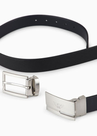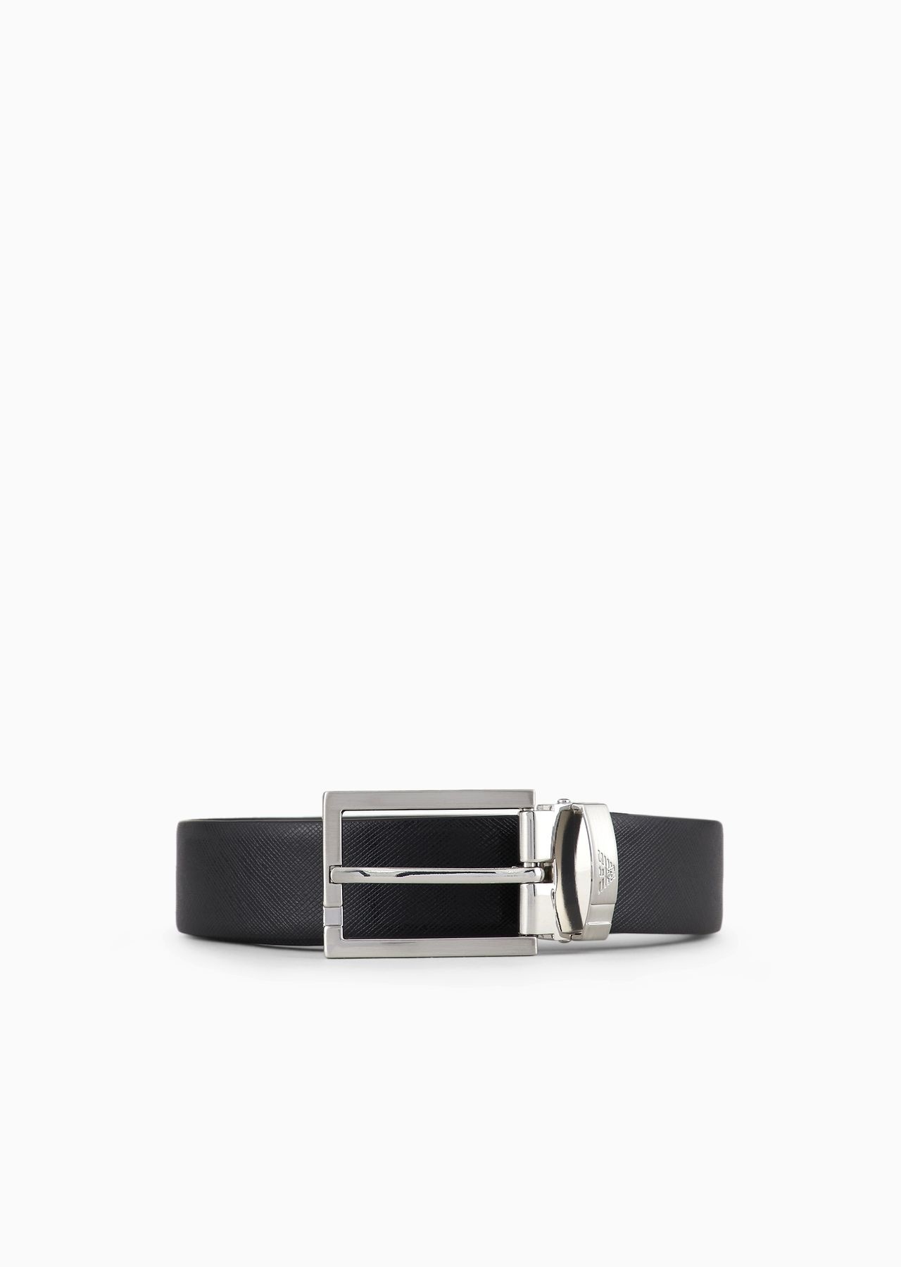 Reversible belt in two-tone leather with all-over embossed eagle