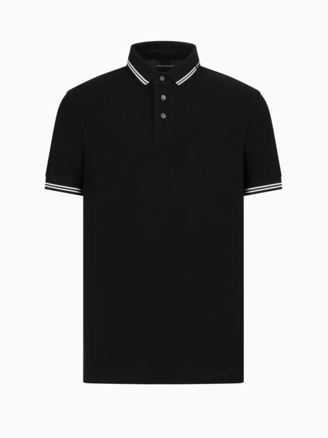 Classic, regular-fit polo shirt made from pure cotton jersey, made unique by the Emporio Armani logo with jacquard stripe details in two different variations: either on the side of the collar or on the button profile, depending on the style. Product Code: 6D1F951JCYZ10029 Details Composition 100% Cotton Regular fit Jersey Polo-shirt collar Partial closure with buttons Placed logo Fitting Regular fit The model is 188 cm tall and is wearing size 48/M (Italian Size)