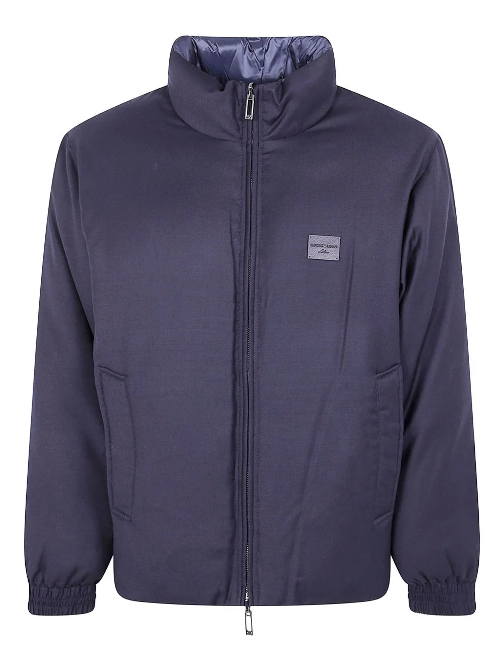logo-detail long-sleeve jacket Highlights - Navy blue - Zip fastening - High neck - Elasticated cuffs Imported Composition Outer: Virgin Wool 40%, Polyester 30%, Viscose 30% Lining: Polyamide 100% Washing instructions Read Manufacturer Guidelines