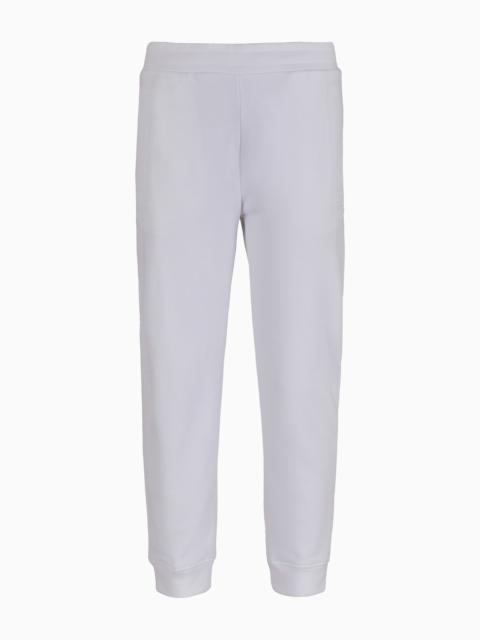 Joggers with elasticated drawstring waist and distinctive micro eagle on the back. This practical downtime staple is made fashionable and exclusive thanks to the design and unique details. This item belongs to the Essentials clothing selection, the Emporio Armani capsule collection that is an evergreen statement of style: an ongoing collection with clean, well-designed shapes for a wardrobe that meets the demands of any season. These “essential”, versatile pieces are a must-have for the male wardrobe. Product Code: 8N1PS91JRIZ10999 Details Composition 67% Modal 33% Cotton Jersey Elasticated drawstring waist Side pockets Elasticated hem Back pocket Micro-eagle on the back Fitting The model is 188 cm tall and is wearing size 48/M (Italian Size)