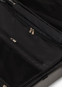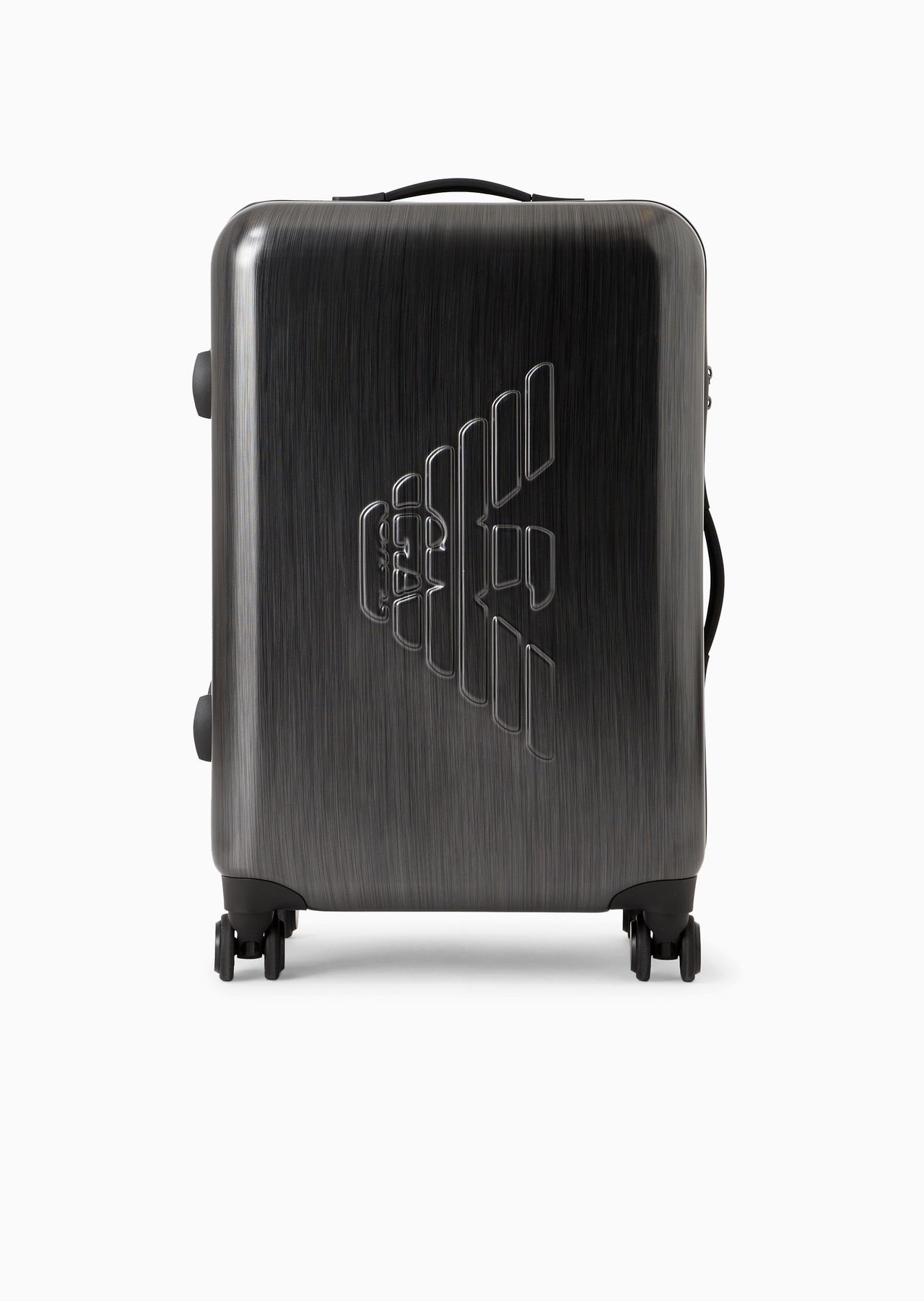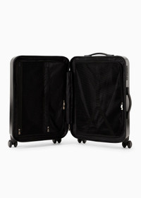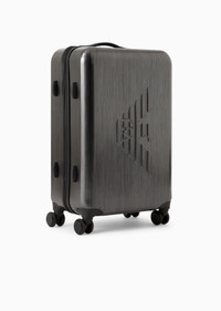 With a TSA-approved luggage lock, this medium trolley suitcase is made from ABS—a lightweight, shock-resistant material. It is equipped with four wheels, a pull-out handle and zipped inner compartments with mesh pockets. Oversized, 3D eagle logo. Check-in, take-off, jet lag. Stylish globe trotters need a wheeled accessory that is practical and fashionable. Emporio Armani finds the perfect balance to ensure you look good when travelling. Product Code: Y4Q324YME9J180002 Details Composition 100% ABS Measurements: 47 x 70 x 27 cm ABS TSA closure Telescopic handle Oversized eagle Side handle Four wheels Compartment with internal organiser