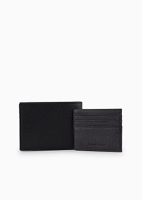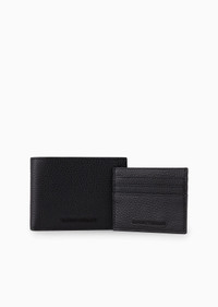 Gift box with wallet and card holder in tumbled leather