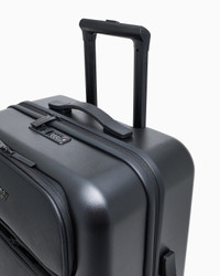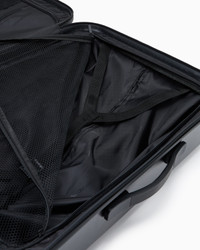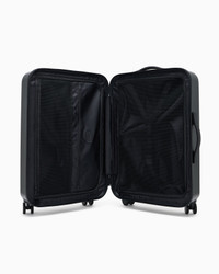 With a TSA-approved luggage lock, this medium trolley suitcase is made from ABS—a lightweight, shock-resistant material. It is equipped with four wheels, a pull-out handle and zipped inner compartments with mesh pockets. On the front, it features a double pocket with a Saffiano finish, a top pocket for small personal items and a pocket with a practical internal laptop holder. A collection of accessories created starting with recycled leather fibres to satisfy the requirements of the Emporio Armani man who demands stylish, work-ready looks. The essential, alluring design features a Saffiano-print finish and is customised with a contoured, perforated metal eagle logo. This item belongs to the Essentials selection, the Emporio Armani capsule collection that is an evergreen statement of style: an ongoing collection with clean, well-designed shapes for a wardrobe that meets the demands of any season. Material (internal component): 100% regenerated leather fibres (at least 50% recycled leather) Measurements: 46 x 68 x 29 cm ABS TSA closure Telescopic handle Zipped outer pocket Outer pocket with laptop compartment Eagle plate Top handle Four wheels Compartments with internal organiser Product Code: EM002547AF13805UC001