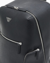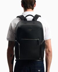 Regenerated leather backpack made from certified recycled material. Every product made from regenerated leather is the result of an eco-sustainable process that re-purposes left-over leather, processed and assembled without using any adhesive whatsoever and very conscious of water conservation. Not wasting resources helps to make this leather an environmentally friendly material, yet it retains the same qualities of real leather, both to the eye and to the touch. A collection of accessories created to satisfy the requirements of the Emporio Armani man who demands stylish, work-ready looks. The essential, alluring design features a Saffiano-print finish and is customised with a shaped, perforated metal eagle logo. Product Code: Y4O409Y138E181072 Details Composition 53% Polyamide 47% Polyester The material is made of 51% regenerated leather Measurements: 26 x 40 x 18 cm Regenerated leather Saffiano leather Eagle plate Top handle Zip closure Zipped front pockets Adjustable shoulder straps This backpack is suitable for carrying: phone, wallet, card holder, 15-inch laptop, documents