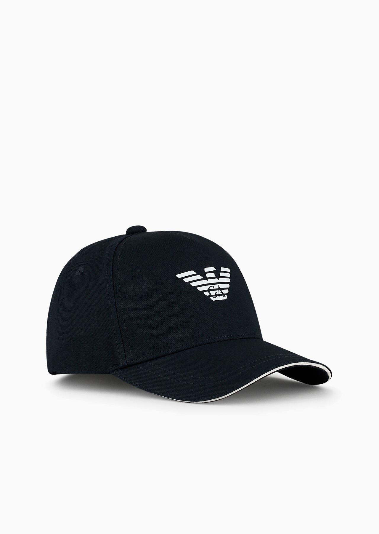 Baseball cap in cotton fabric with iconic printed eagle. This accessory belongs to the Essentials selection, the Emporio Armani capsule collection that is an evergreen statement of style: an ongoing collection with clean, well-designed shapes for a wardrobe that meets the demands of any season. Product Code: 627920CC990100035 Details Composition 100% Cotton Cotton Eagle print Rigid visor Adjustable back