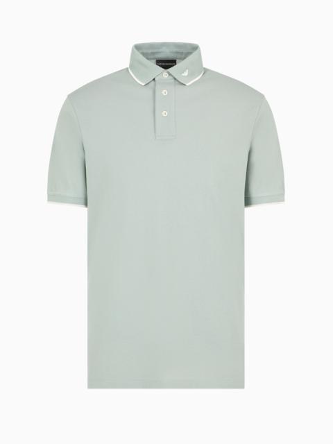 Mercerised piqué polo shirt with micro eagle embroidery