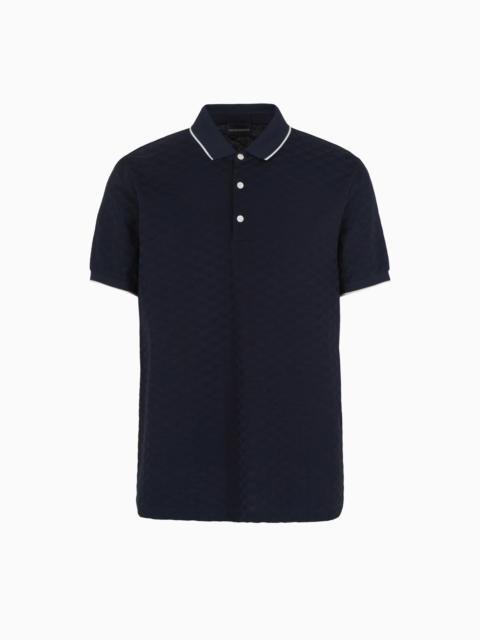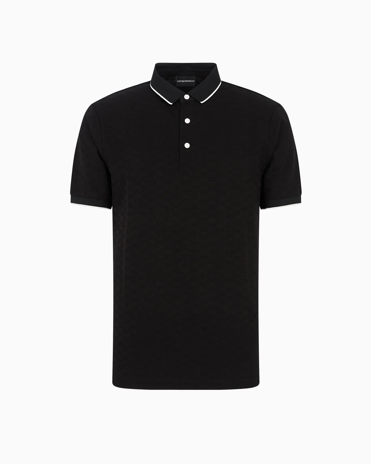 Men’s polo shirt made from high-quality, mercerised cotton for added sheen, durability and breathability. Iconic matching all-over jacquard eagle. This item belongs to the Essentials clothing selection, the Emporio Armani capsule collection that is an evergreen statement of style: an ongoing collection with clean, well-designed shapes for a wardrobe that meets the demands of any season. These “essential”, versatile pieces are a must-have for the male wardrobe. Product Code: 8N1FP01JHWZ10999 Details Composition 100% Cotton Jersey Mercerised cotton All-over jacquard motif Polo-shirt collar Partial closure with buttons Short sleeves Side slits at the hem Fitting The model is 188 cm tall and is wearing size 48/M (Italian Size)