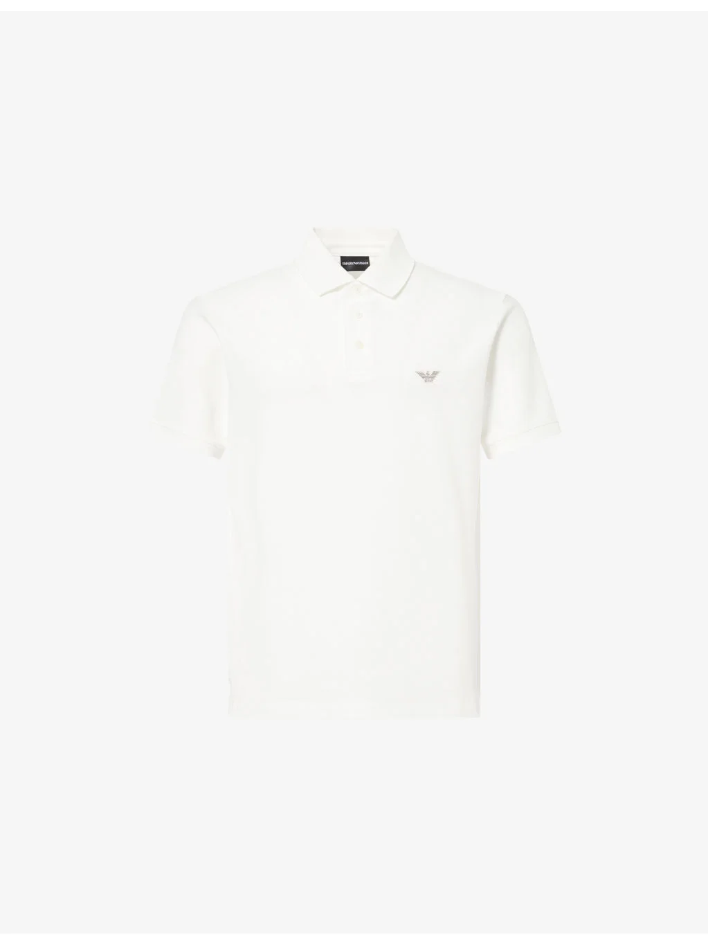 PRODUCT DETAILS - Emporio Armani pique-cotton polo shirt - 100% cotton - Button fastening at front - Regular fit, polo collar, logo embroidered at chest, straight hem - Machine wash at 30°C - Model is 6ft 2in/1.88m and wears a size medium - Lightweight, slight stretch Ref: R04556468