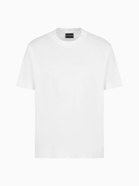 Crew-neck T-shirt made from lightweight pure cotton jersey, featuring embossed logo embroidery. By choosing this product you are helping to support the Better Cotton Initiative: The BCI uses a tracking system that allows Better Cotton to replace or be blended with conventional cotton. Product Code: 6D1TQ71JOCZ10988 Details Composition 100% Cotton Regular fit Lightweight jersey Crew neck Short sleeves Logo embroidery Fitting Regular fit The model is 188 cm tall and is wearing size 48/M (Italian Size)