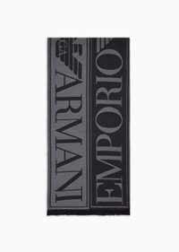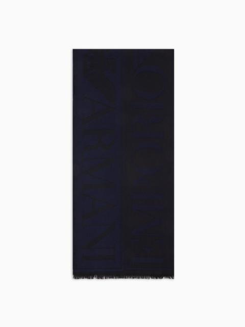Scarf made of pure virgin wool, featuring oversized jacquard-weave logo lettering. Product Code: 6250214F322100321 Details Composition 100% Virgin Wool Virgin wool Jacquard Oversized lettering Fringed hem Made in Italy
