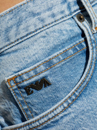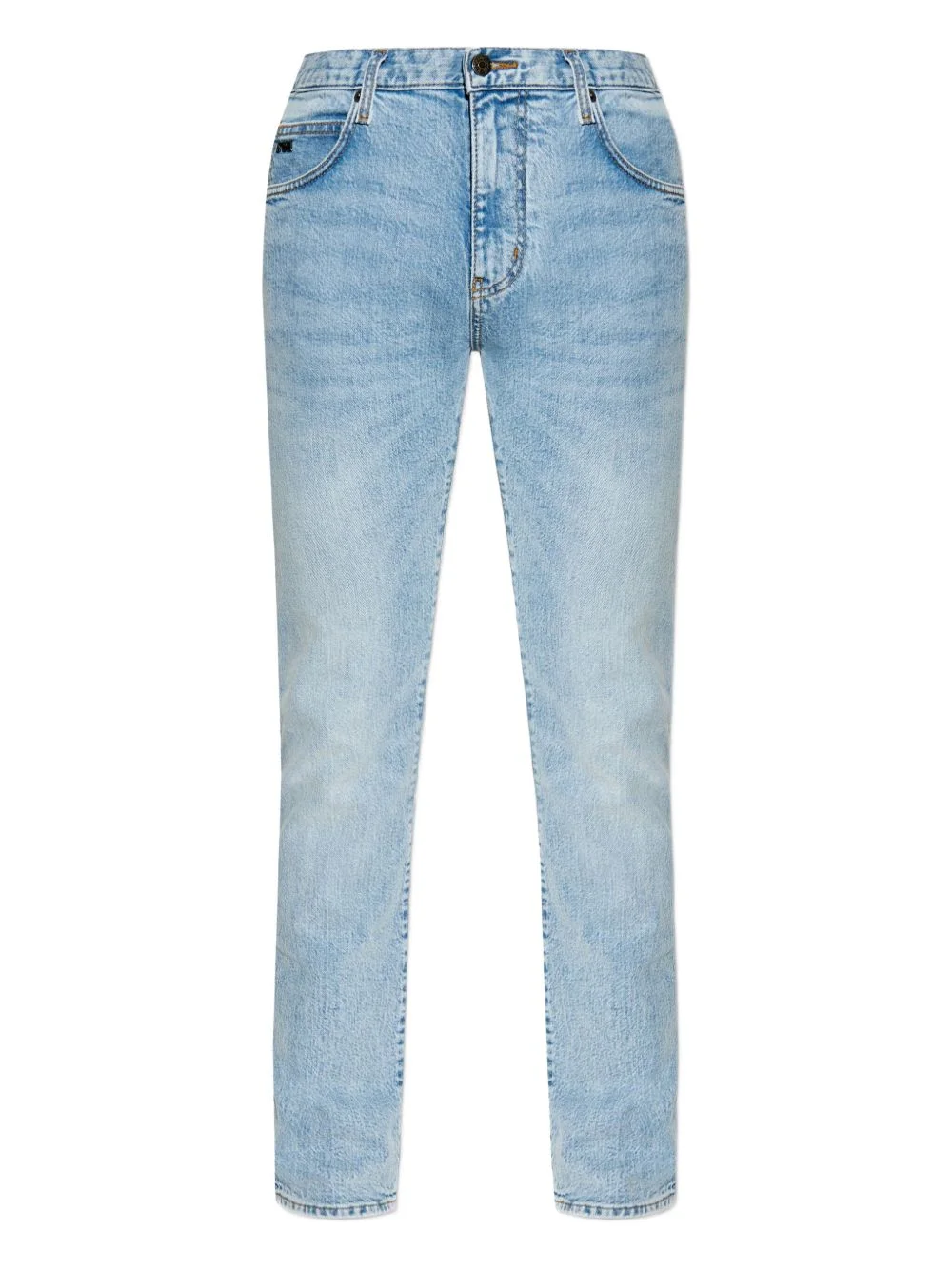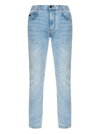 logo-motif jeans Highlights - Light blue - Faded wash - Five-pocket styling - Button fly - Logo patch Imported Composition Cotton 99%, Elastane 1% Washing instructions Read Manufacturer Guidelines