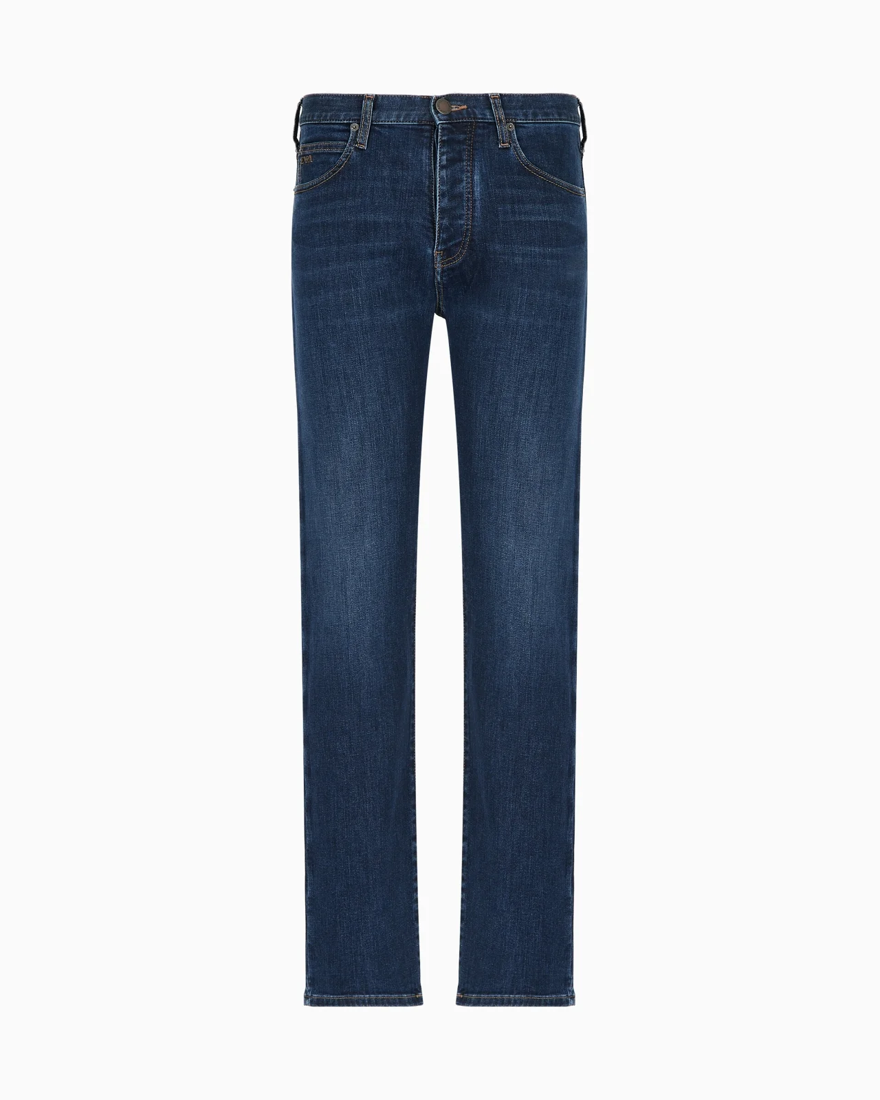 These jeans are made of stretch cotton comfort-denim with contrasting tobacco stitching. Regular leg and waist with button fly. Regular fit. This item belongs to the Essentials clothing selection, the Emporio Armani capsule collection that is an evergreen statement of style: an ongoing collection with clean, well-designed shapes for a wardrobe that meets the demands of any season. These “essential”, versatile pieces are a must-have for the male wardrobe. Product Code: 8N1J211G0LZ10942 Details Composition 98% Cotton 2% Elastane Regular fit 11.5 oz comfort denim Five-pocket style Regular waist with loops Button closure Coin pocket with logo plate Logo label Eagle logo plate Tobacco-coloured stitching Fitting The model is 188 cm tall and is wearing size 32