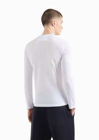 This crew-neck jumper with a micro logo patch on the chest is made from luxury Supima – a high-quality Pima cotton offering incredible softness, durability and sheen. This item belongs to the Essentials clothing selection, the Emporio Armani capsule collection that is an evergreen statement of style: an ongoing collection with clean, well-designed shapes for a wardrobe that meets the demands of any season. These “essential”, versatile pieces are a must-have for the male wardrobe. Product Code: 8N1TR11JRGZ10100 Details Composition 100% Cotton Jersey Supima cotton Crew neck Long sleeves Front logo patch Fitting The model is 188 cm tall and is wearing size 48/M (Italian Size)