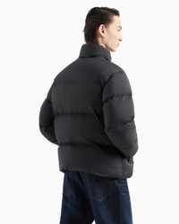 Nylon down jacket with full-zip closure. The snug fit from the genuine down filling is enhanced by the quilting. The embossed, rubberised logo patch on the chest adds a distinctive allure. Product Code: 6D1BF61NQTZ10999 Details Composition 100% Polyester Nylon Quilted Genuine down padding Full zip Logo patch Side pockets Long sleeves Stretch cuffs Two inside pockets with zipped compartments Two inside pockets with open compartments Fitting The model is 188 cm tall and is wearing size 48/M (Italian Size)