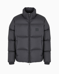 Nylon down jacket with full zip and rubberised logo patch