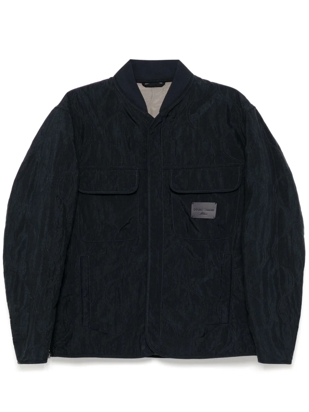 logo-patch padded jacket Highlights - Navy blue - Concealed front button fastening - Concealed side zip fastening Imported Composition Polyamide 100% SIZE & FIT Model measurements Height 6 ft 2 in(1.87 m) Bust/Chest 33.07 in(84 cm) Hips 35.43 in(90 cm) Waist 26.77 in(68 cm) FittingInformation Designed to be unstructured, offering a loose fit throughout Made from a midweight non-stretch fabric