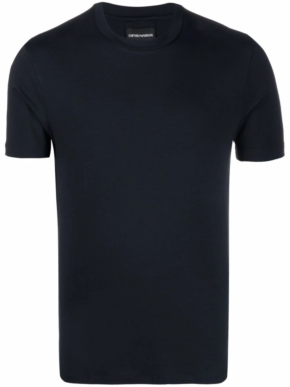 round neck short-sleeved T-shirt navy-blue round neck short sleeves straight hem Imported Composition Viscose 97%, Elastane 3% SIZE & FIT Model measurements Height 6 ft 1 in(1.85 m) Bust/Chest 38.58 in(98 cm) Hips 37 in(94 cm) Waist 30.31 in(77 cm) FittingInformation This piece fits true to size. We recommend you get your regular size Cut for a slim fit Made with a mid-weight stretch fabric Washing instructions Machine Wash