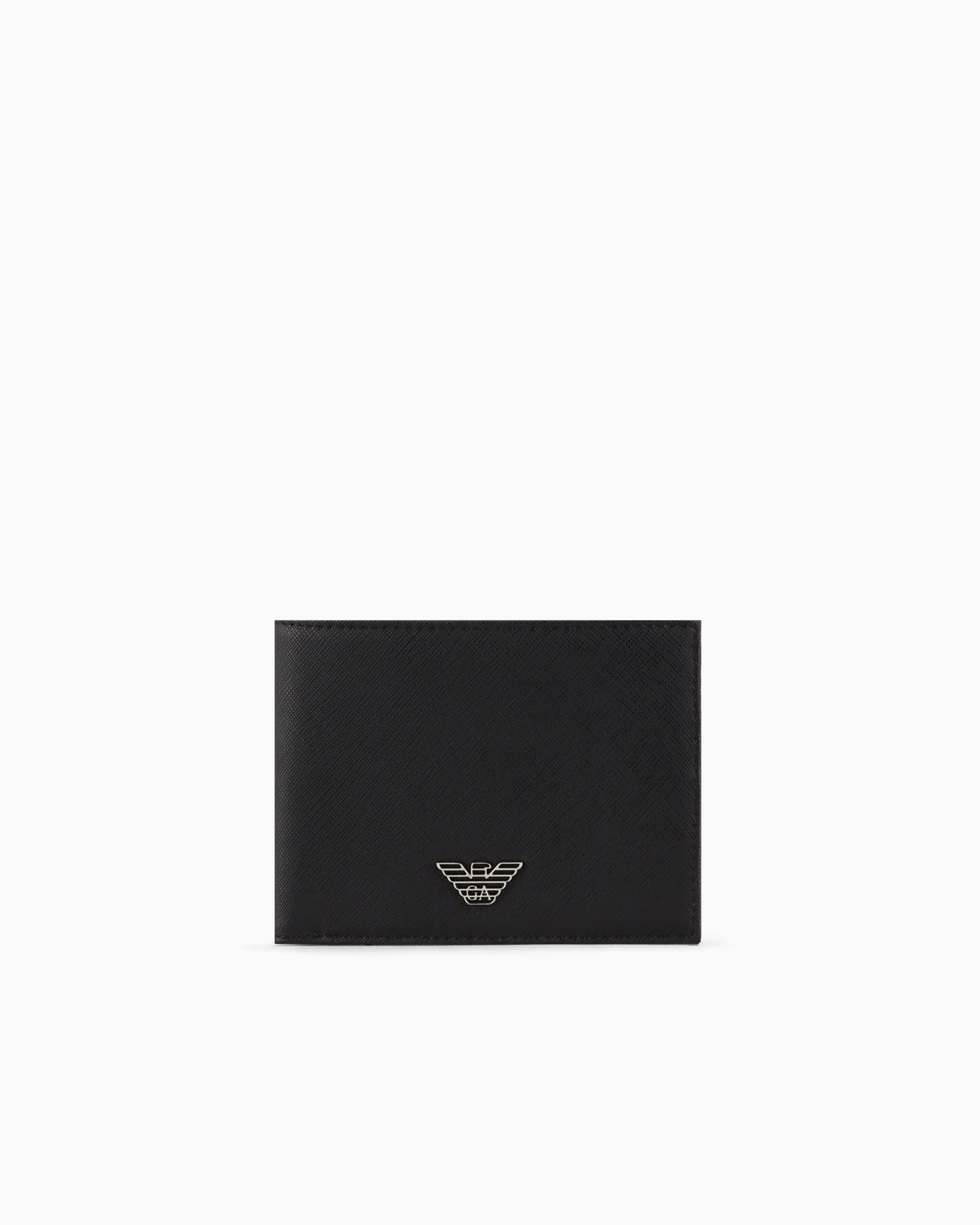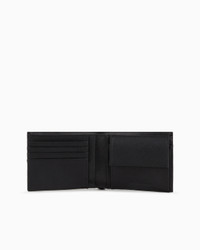 Wallet in regenerated leather made from certified recycled material, featuring multiple card slots, a banknote compartment and a coin purse, making this style a must-have for daily life. Every product made from regenerated leather is the result of an eco-sustainable process that re-purposes left-over leather, processed and assembled without using any adhesive whatsoever and very conscious of water conservation.Not wasting resources helps to make this leather an environmentally friendly material, yet it retains the same qualities of real leather, both to the eye and to the touch. A collection of accessories created to satisfy the requirements of the Emporio Armani man who demands stylish, work-ready looks. The essential, alluring design features a Saffiano-print finish and is customised with a shaped, perforated metal eagle logo. The material is made of 51% regenerated leather Measurements: 12.5 x 9.5 x 2.5 cm Saffiano leather Eagle plate Card pockets Banknote compartment Coin purse with flap Product Code: Y4R165Y138E81072