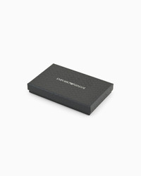 Card holder made from cowhide. This small leather goods line is defined by timeless elegance, with vintage details that combine with a modern and sophisticated style. These genuine leather accessories are embellished with a pattern depicting a repeating, vintage-inspired, embossed knot motif and are completed by a distinctive metal detail with the iconic eagle on the left corner. Measurements: 10 x 8 x 0.5 cm Leather Embossed pattern Metal eagle Card pockets Product Code: YEM320YQ82X80001