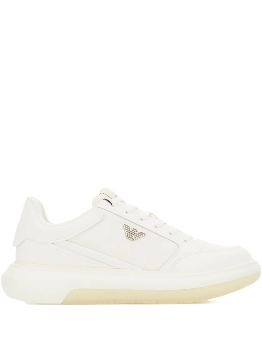 logo-plaque platform sneakers Highlights - Off-white - Leather - Platform sole - Lace-up fastening - Padded collar Imported Composition Outer: Polyamide 100% Lining: Fabric 100% Sole: Rubber 100%