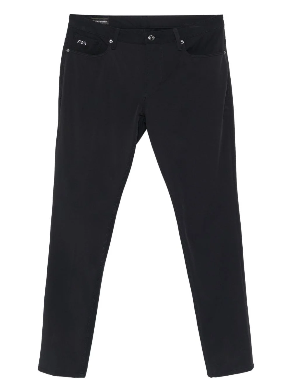 logo-plaque trousers Highlights - Black - Logo detail - Five-pocket styling - Zip fly - Button fastening - Straight leg Imported Composition Polyamide 85%, Elastane 15% SIZE & FIT Model measurements Height 6 ft 0 in(1.84 m) Bust/Chest 37.79 in(96 cm) Hips 37 in(94 cm) Waist 31.49 in(80 cm) Washing instructions Machine Wash