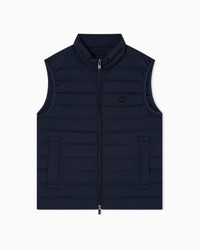 Sleeveless nylon down jacket with full-zip fastening and eagle patch on the chest. The simple, modern nature of this men’s down jacket is enhanced by genuine feather padding and a matelasse effect. The perfect item for urban day wear. This item belongs to the Essentials clothing selection, the Emporio Armani capsule collection that is an evergreen statement of style: an ongoing collection with clean, well-designed shapes for a wardrobe that meets the demands of any season. These “essential”, versatile pieces are a must-have for the male wardrobe. Product Code: 8N1BQ11NLRZ10920 Details Composition 100% Polyester Nylon Quilted Full-zip closure Sleeveless Front logo patch Side pockets Fitting The model is 188 cm tall and is wearing size 48/M (Italian Size)