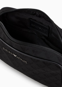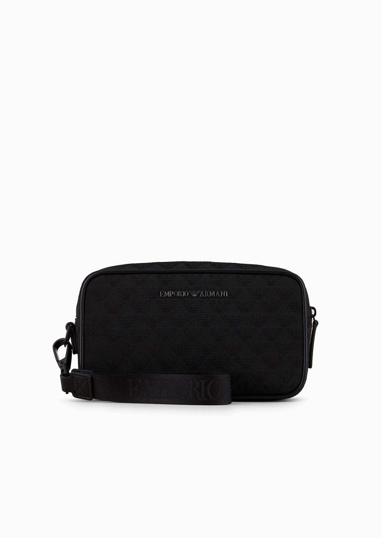 This indispensable nylon washbag holds all the must-haves for your grooming routine. Includes a practical, snap hook-detachable wristlet. The exclusive jacquard depicting the all-over iconic eagle creates a distinctive, recognisable texture. A series of accessories that are both classic and modern, enhanced by the front applied Emporio Armani lettering and satin finish. This accessory belongs to the Essentials selection, the Emporio Armani capsule collection that is an evergreen statement of style: an ongoing collection with clean, well-designed shapes for a wardrobe that meets the demands of any season. Product Code: Y4R356Y022V181336 Details Composition 52% Polyester 48% Cotton Measurements: 22.5 x 12 x 5 cm Jacquard nylon All-over eagle Metal logo Zip closure Detachable wrist strap