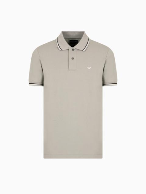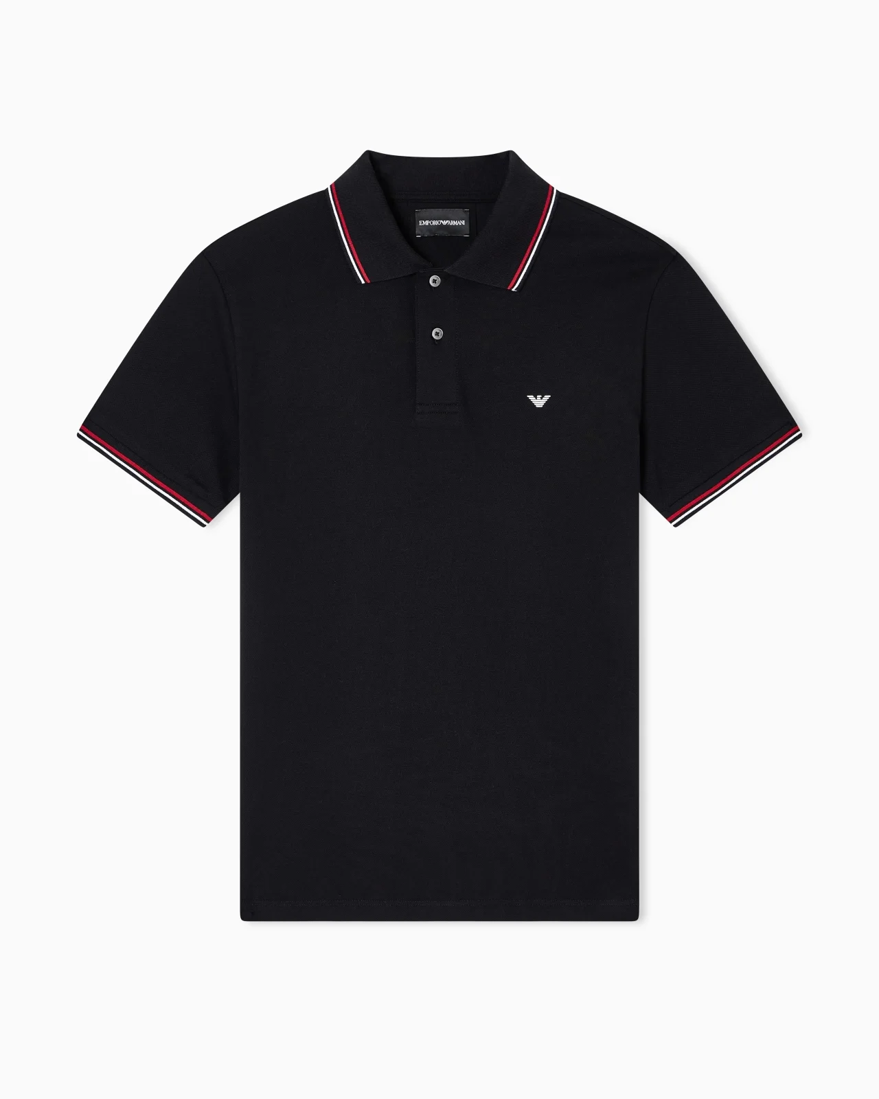 This slim-fit men’s polo shirt is made of stretch cotton pique and features a contrasting iconic eagle on the chest. This item belongs to the Essentials clothing selection, the Emporio Armani capsule collection that is an evergreen statement of a style: an ongoing collection with clean, well-designed shapes for a wardrobe that meets the demands of any season. These “essential”, versatile pieces are a must-have for the male wardrobe. Product Code: 8N1FB41JPTZ10999 Details Composition 96% Cotton 4% Elastane Slim fit Pique Polo-shirt collar Partial closure with buttons Short sleeves Eagle embroidery on the chest Side slits at the hem Fitting Slim fit The model is 188 cm tall and is wearing size 48/M (Italian Size)