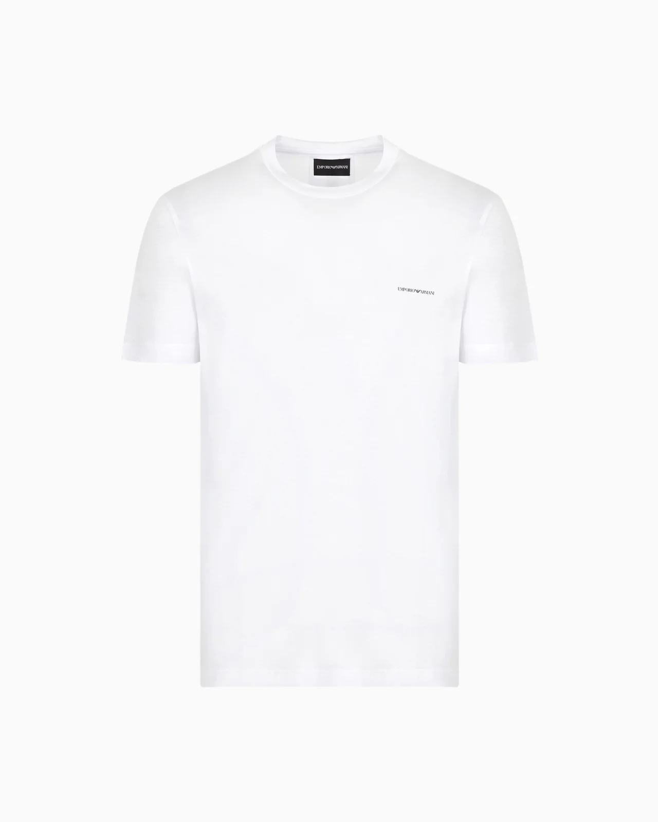 Crew-neck T-shirt with logo lettering print on the chest, made from jersey in a blend of cotton and Lyocell – a semi-synthetic fibre that has an exceptionally low impact on the environment. It is derived from eucalyptus trees and is renowned for being very durable, breathable, absorbent and wrinkle-proof. This item belongs to the Essentials clothing selection, the Emporio Armani capsule collection that is an evergreen statement of style: an ongoing collection with clean, well-designed shapes for a wardrobe that meets the demands of any season. These “essential”, versatile pieces are a must-have for the male wardrobe. Product Code: 8N1TD81JUVZ10100 Details Composition 70% Lyocell 30% Cotton Jersey Crew neck Short sleeves Micro logo lettering print Fitting The model is 188 cm tall and is wearing size 48/M (Italian Size)