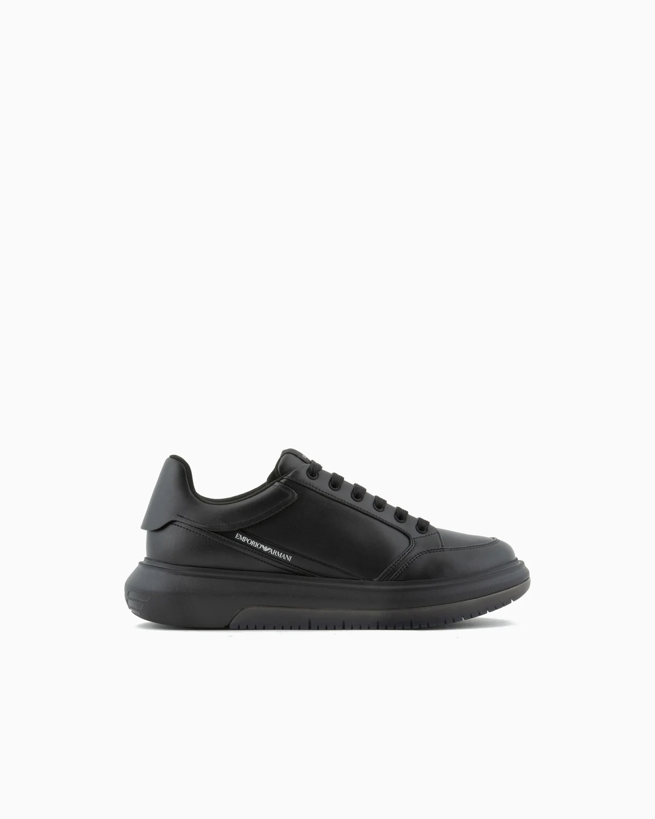 Leather sneakers with lace-up closure and contrasting side logo. This modern style is defined by daring volumes, with an oversized sole in ultra-lightweight EVA that makes the shoe exceptionally light and flexible. These sneakers move from casual moments to more elegant, formal occasions with ease. Product Code: X4X633XM9641K001 Details Composition 100% Bovine leather Leather Lace-up fastening Side logo Rubber soles