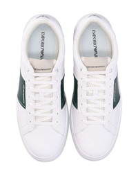 logo-print low-top leather sneakers Highlights - White/dark green - Calf leather - Panelled design - Logo print to the side - Round toe - Front lace-up fastening - Logo patch at the tongue - Flat rubber sole Made in Italy Composition Sole: Rubber 100% Lining: Fabric 100% Outer: Calf Leather 100%