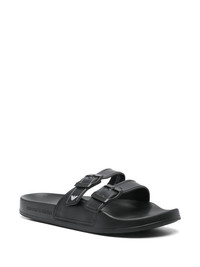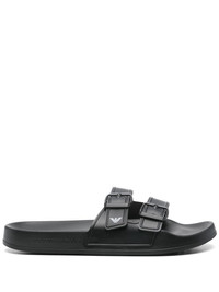 logo-print slides Highlights - Black - Two buckle-strap fastenings - Branded footbed - Flat sole - Round toe Imported Composition Outer: PVC 100% Sole: Polyethylene vinyl acetate (PEVA) 100% Lining: Thermoplastic 100%